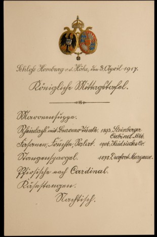 Luncheon at the Homburg vor de Hohe Palace hosted by Their Imperial and Royal Majesties Kaiser Wilhelm II and Kaiserin Auguste-Viktoria of Germany and Prussia for a visit by Their Imperial and Apostolic Majesties Kaiser Charles I and Kaiserin Zita of Austria-Hungary